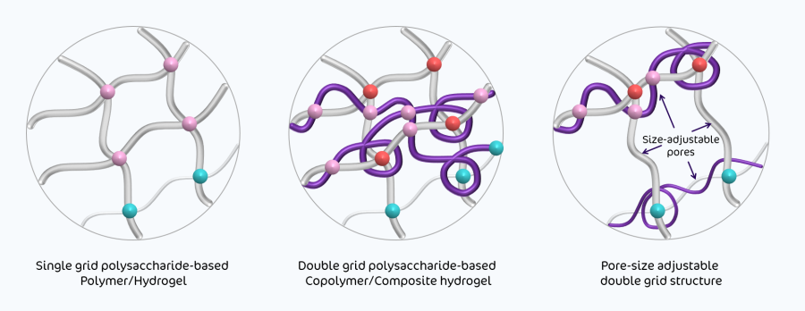 - Introducing the macromolecule crosslinker can shrink or expand when engaged with specific conditions/solvents.